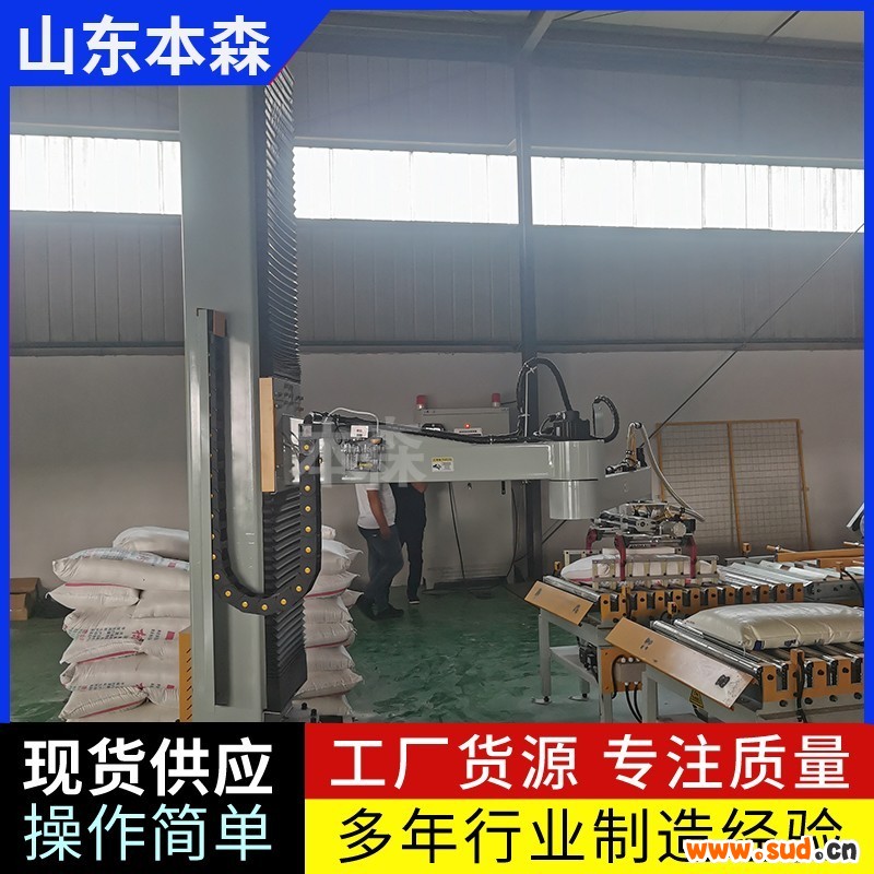 花生立柱码垛机械手带托盘库是一种集成了立柱结构、机械手与托盘库的自动化设备,可实现花生包装袋的自动抓取、搬运、码垛及托盘管理,适用于花生加工厂等场景,具有高效、灵活、稳定、节省空间等优势。 以下是对其详细介绍: